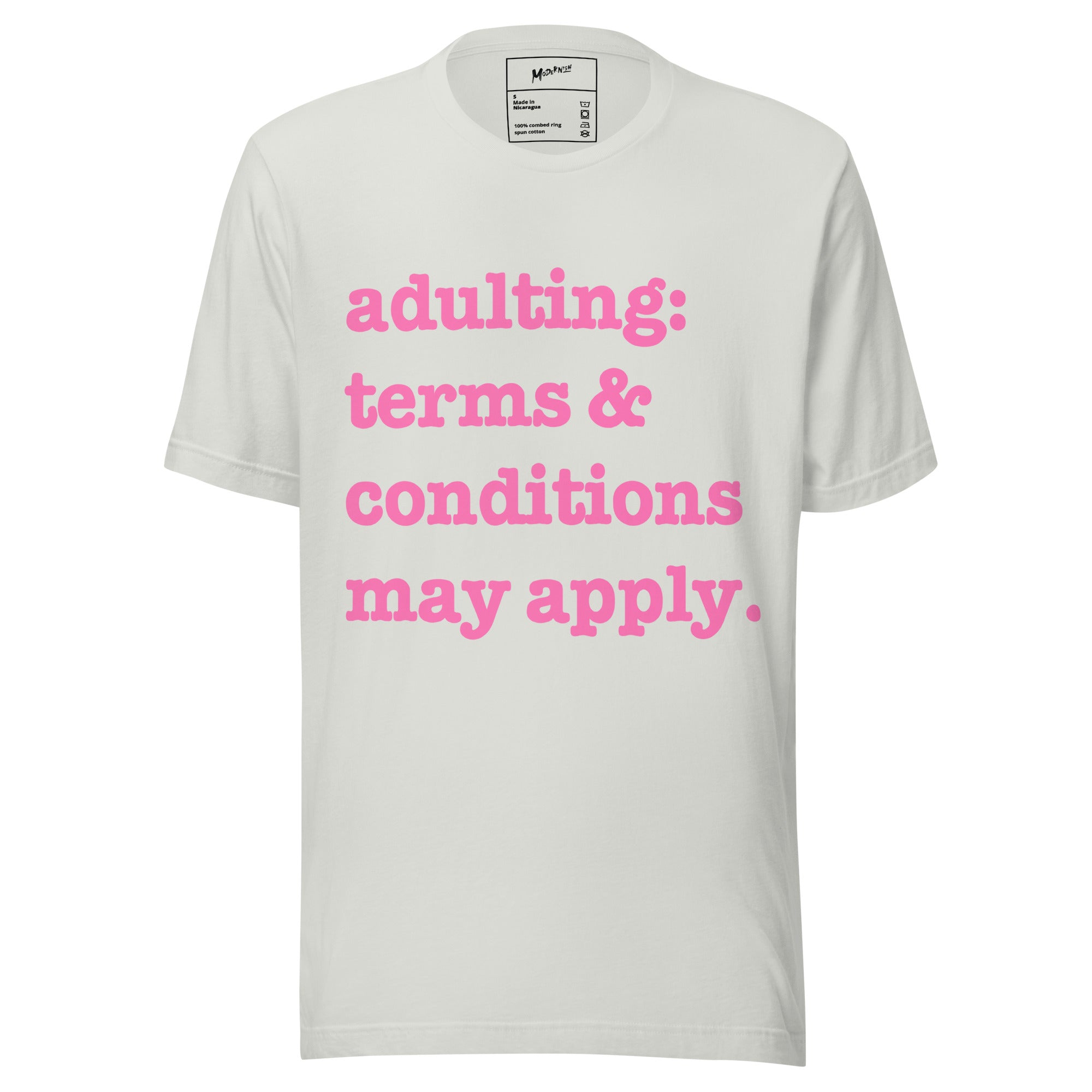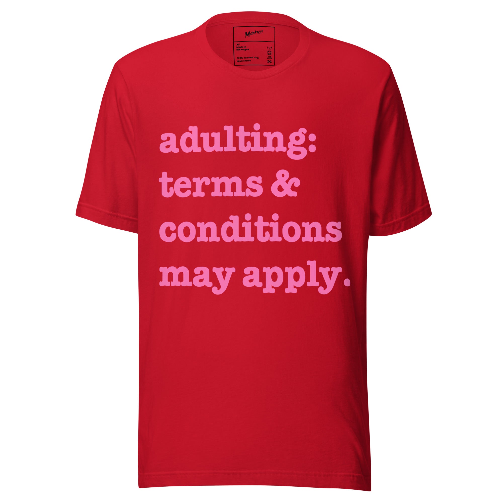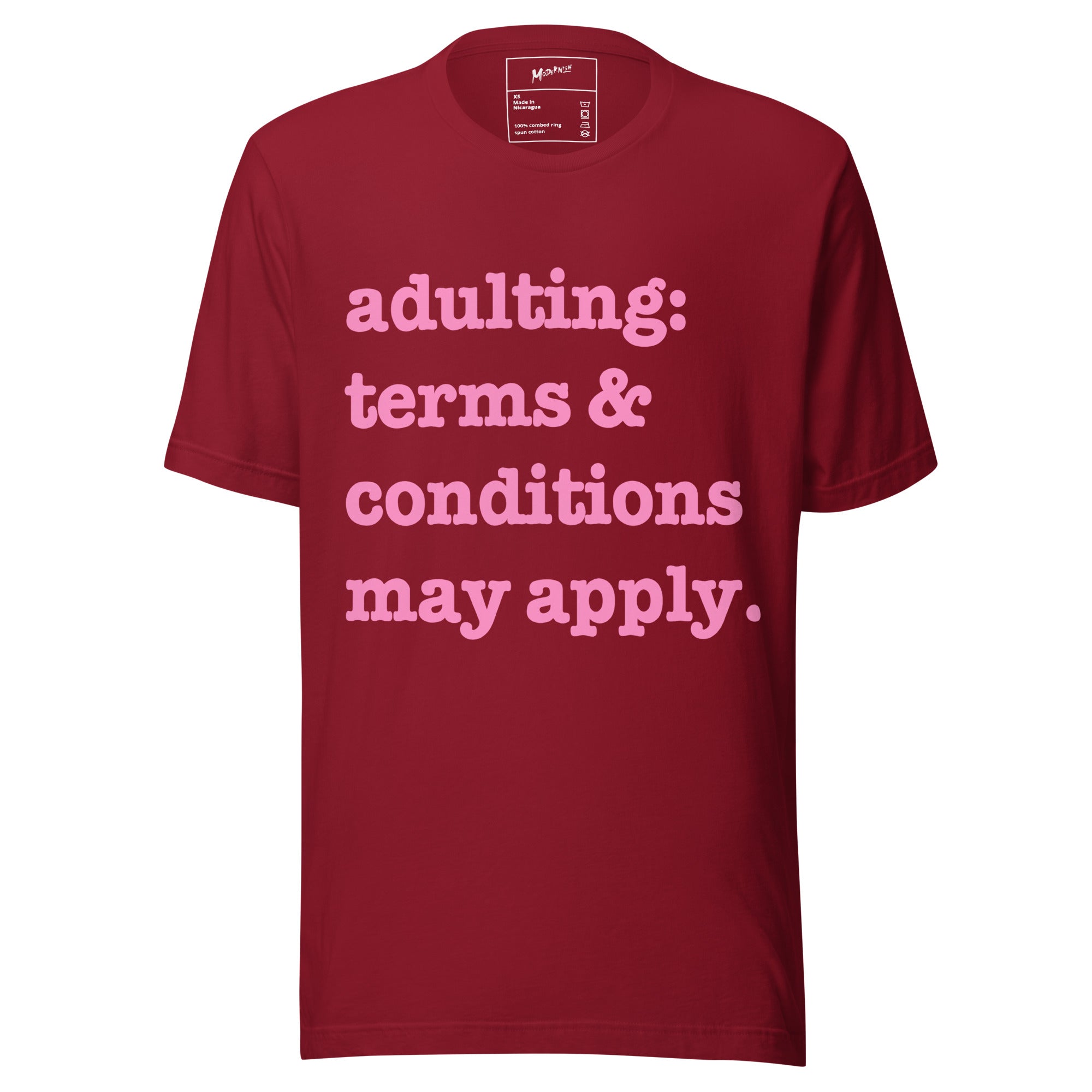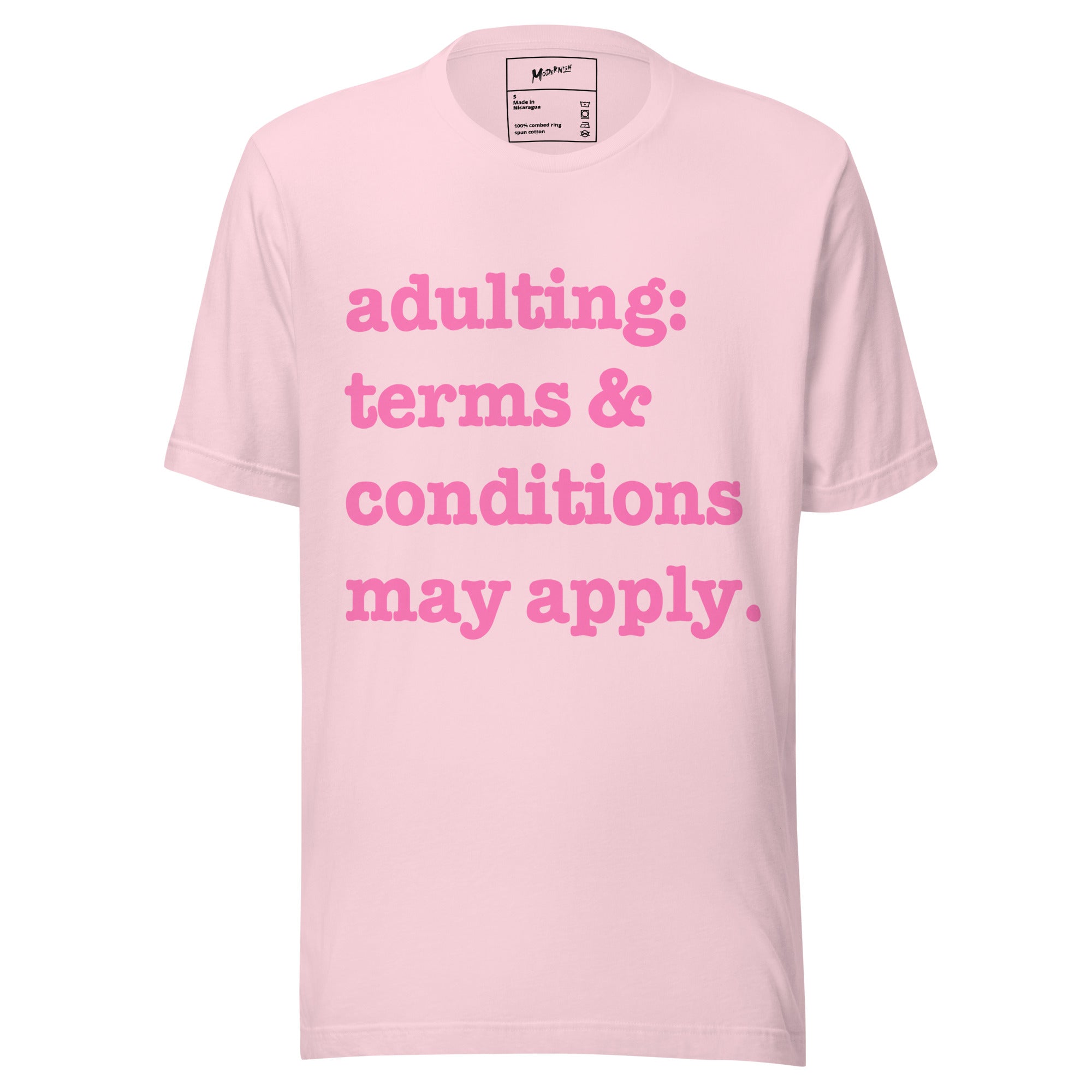Adulting: Terms & Conditions Apply Unisex T-Shirt - Pink Writing