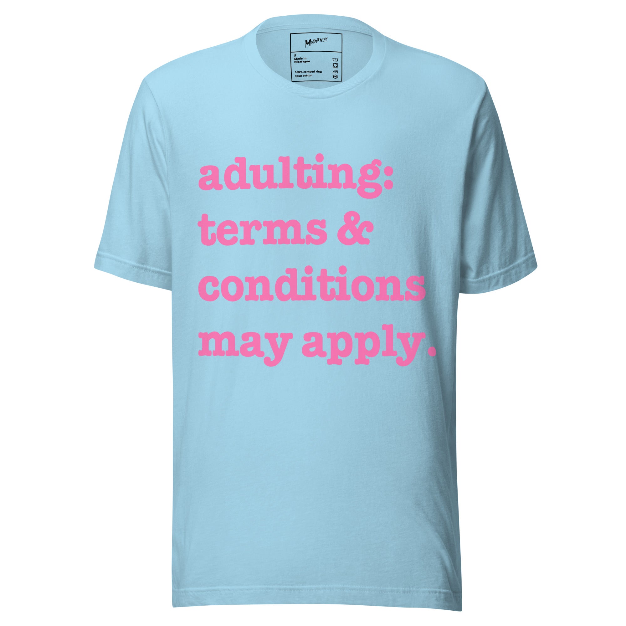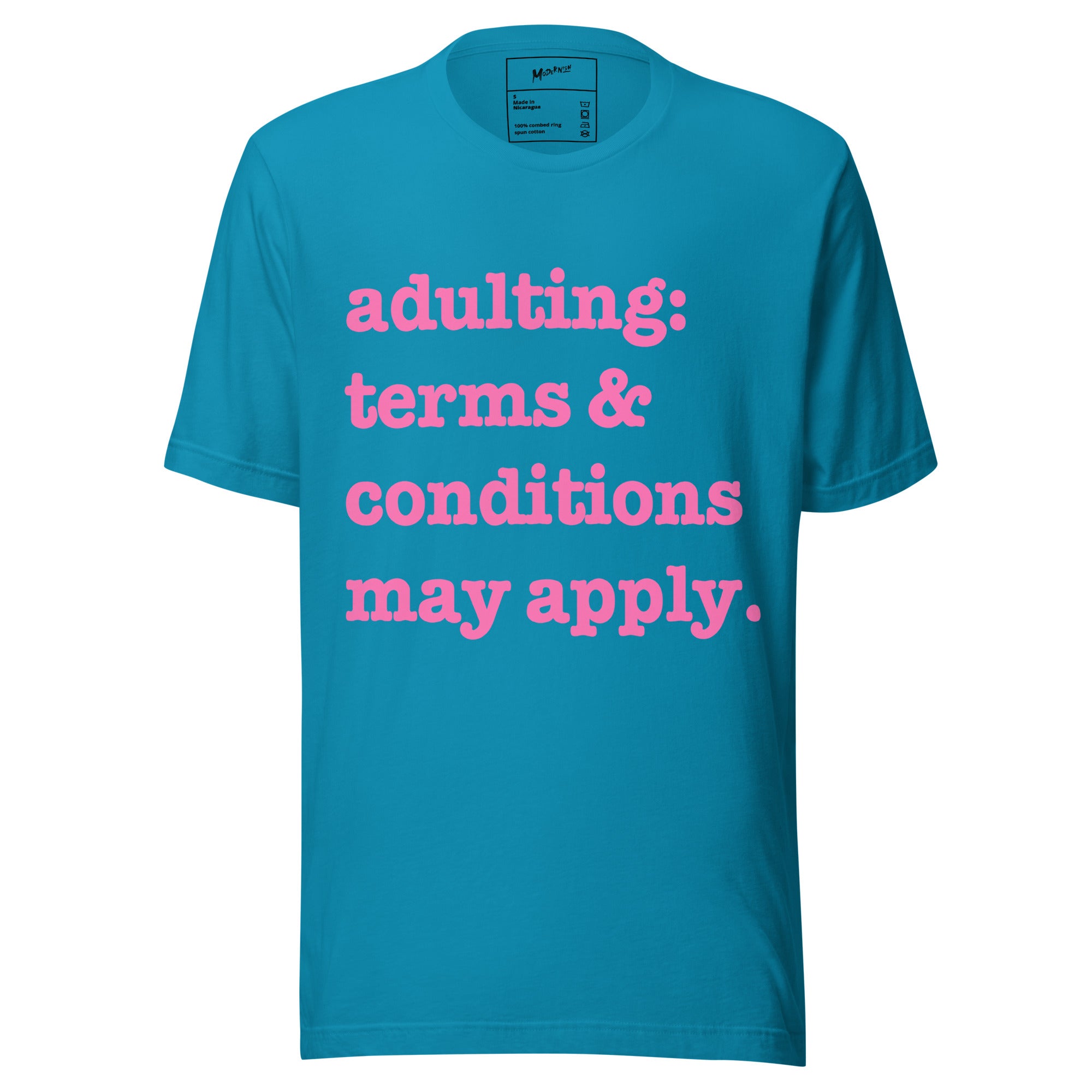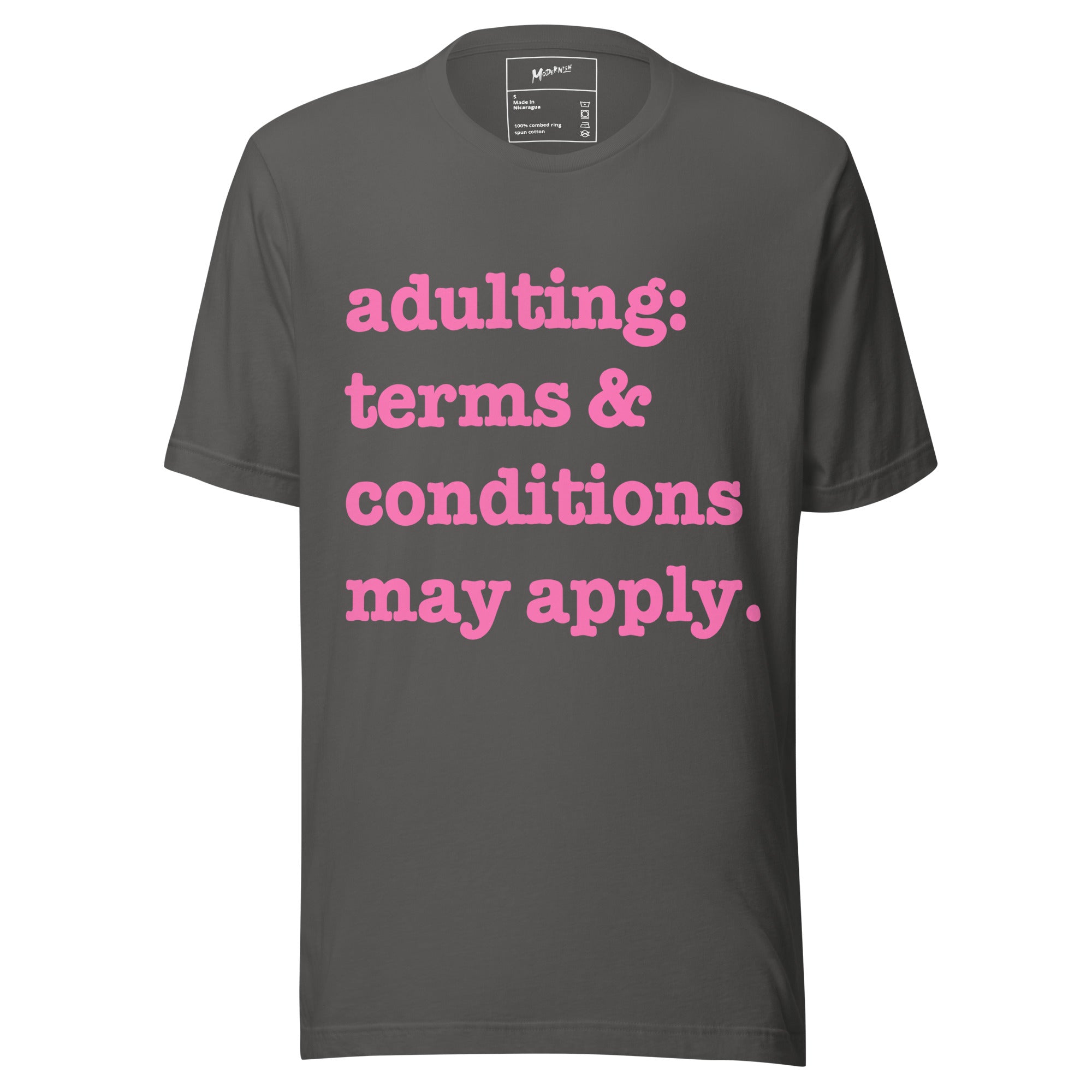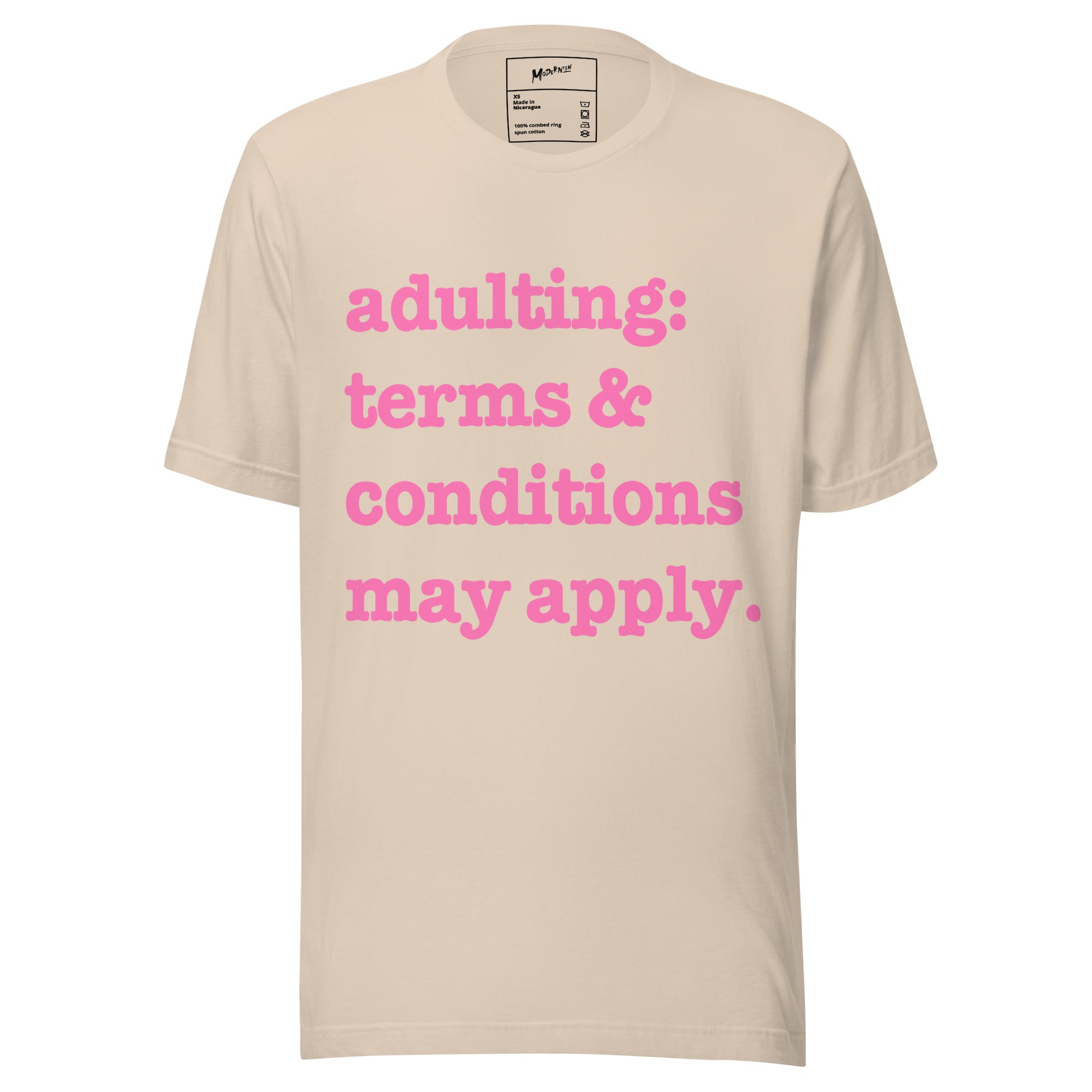 Adulting: Terms & Conditions Apply Unisex T-Shirt - Pink Writing